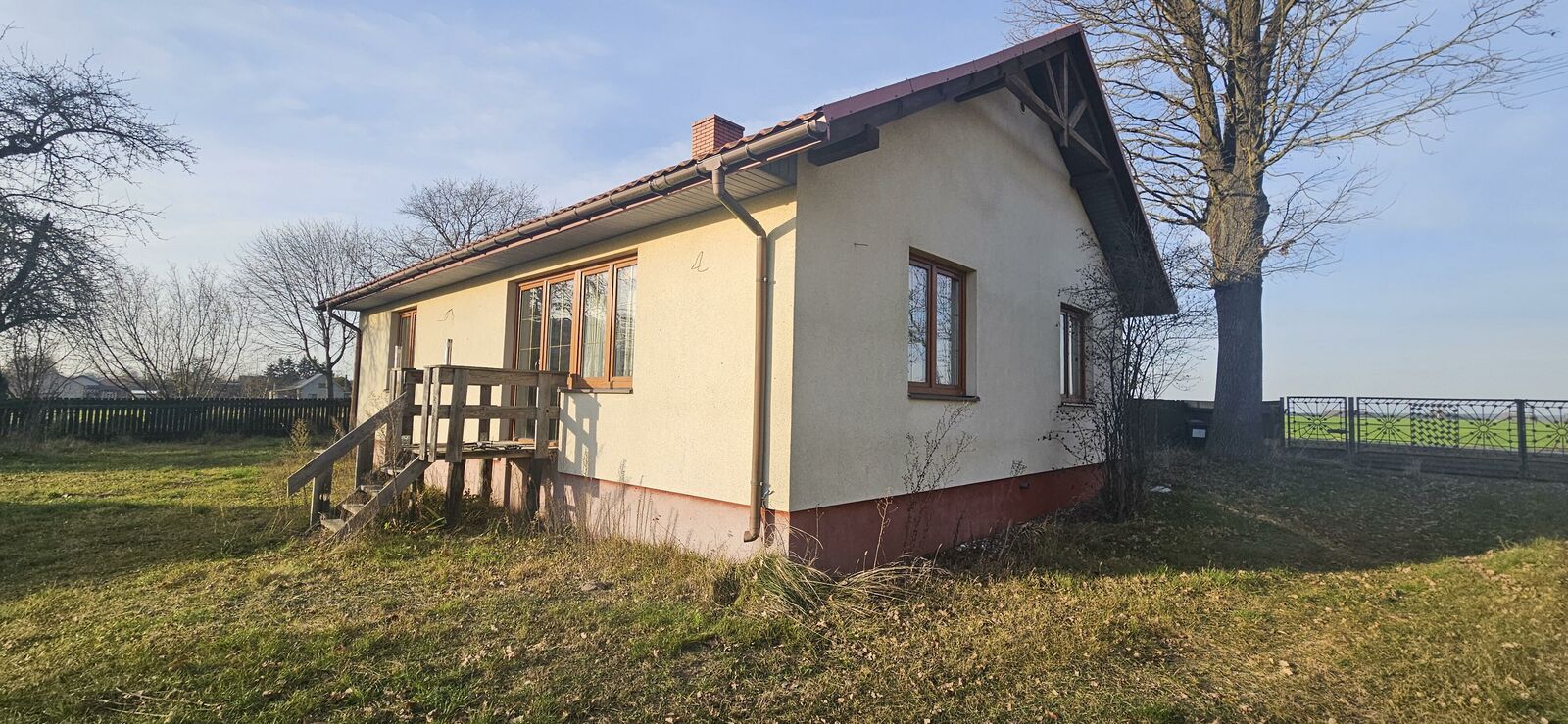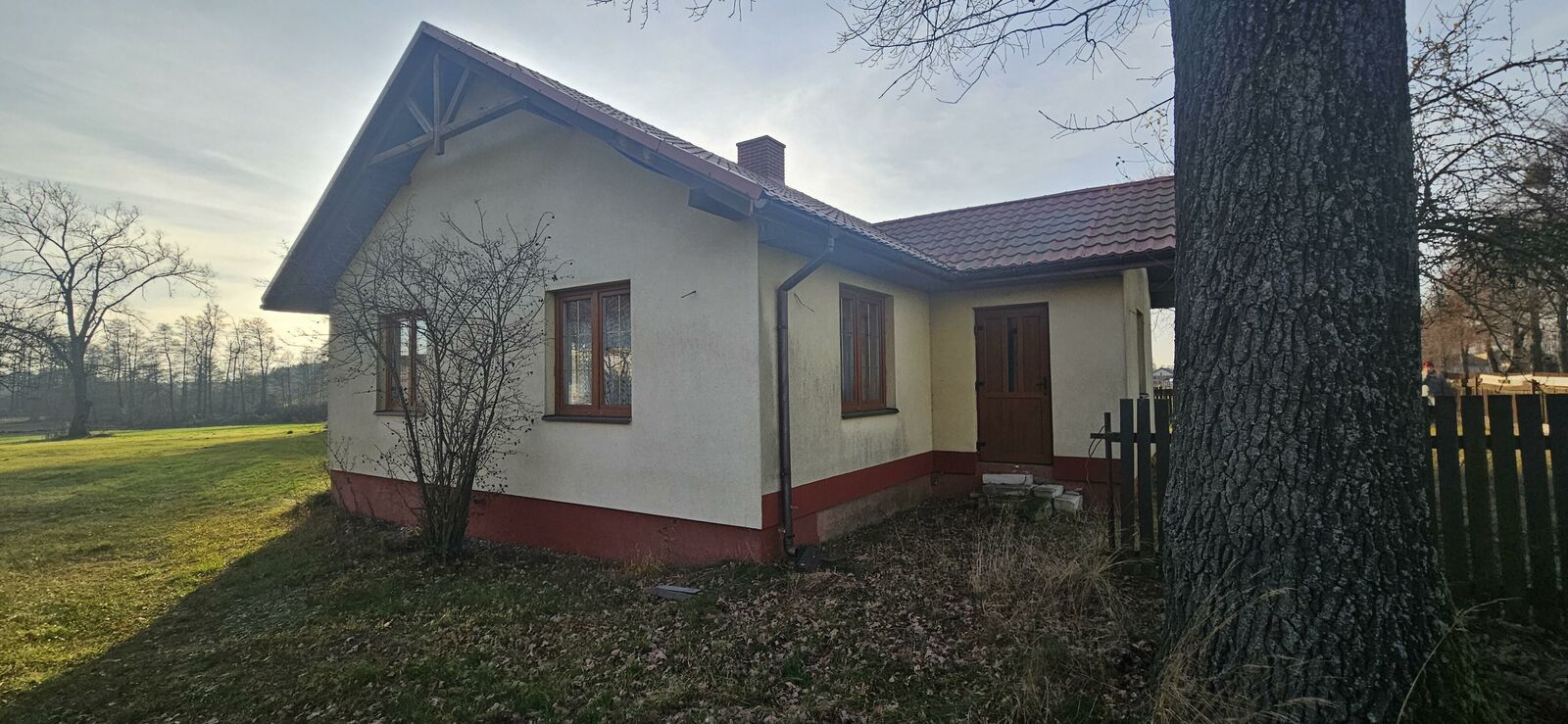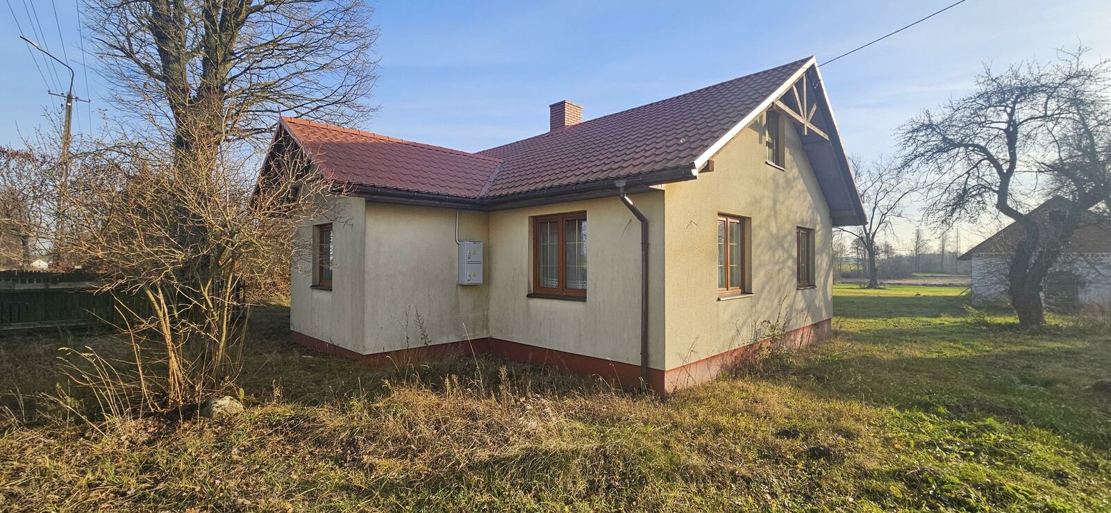 Dom parterowy o powierzchni 116 m2, wybudowany z pustaka, ocieplony, kryty blachodachówką. Posiada plastikowe okna z ozdobnymi szprosami.